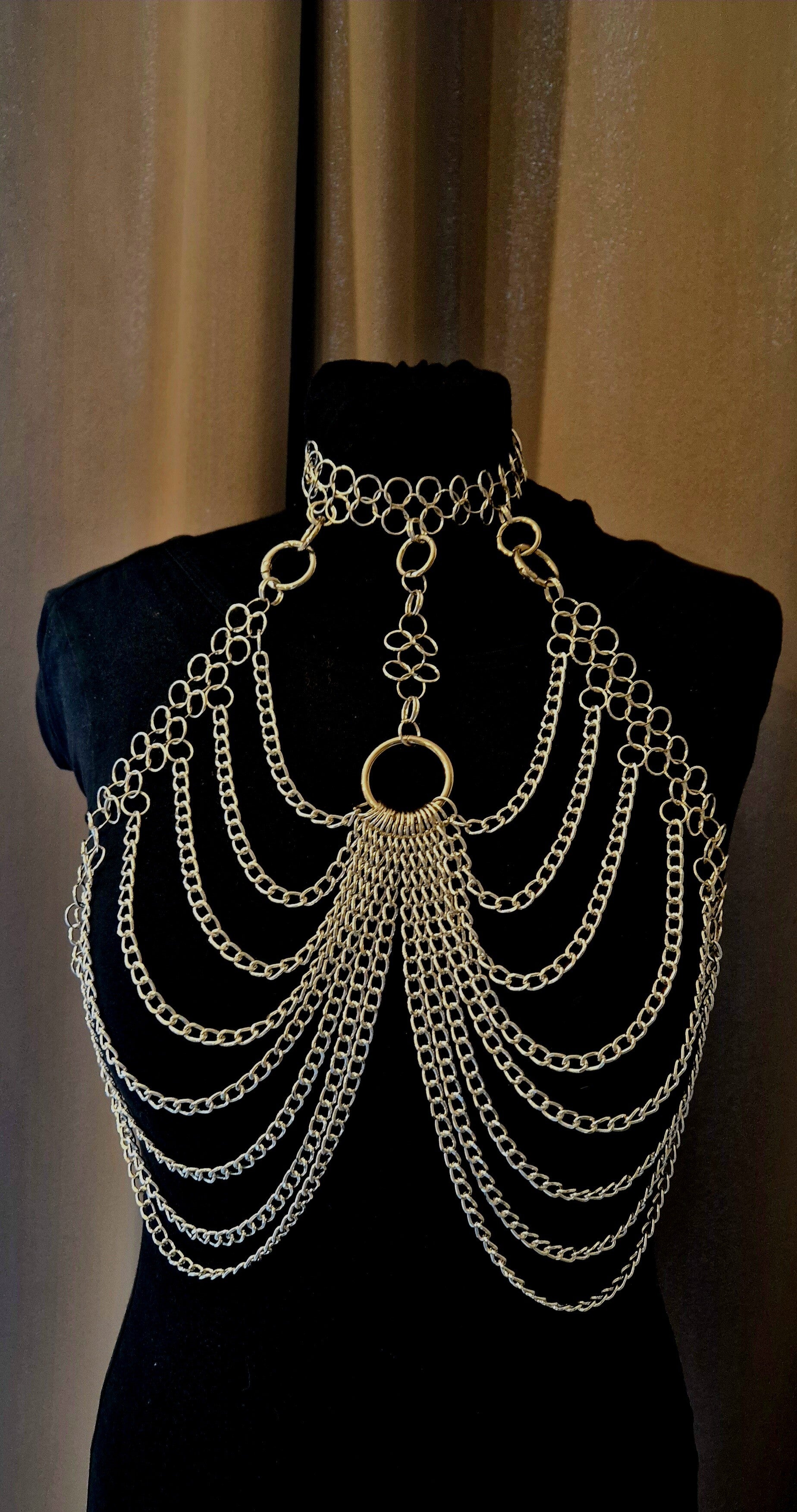Dit stuk is perfect voor raves, BDSM-sessies of als statement accessoire voor wie durft te schitteren in metalen pracht. Bezwijk aan de ketens van verlangen. ππ₯