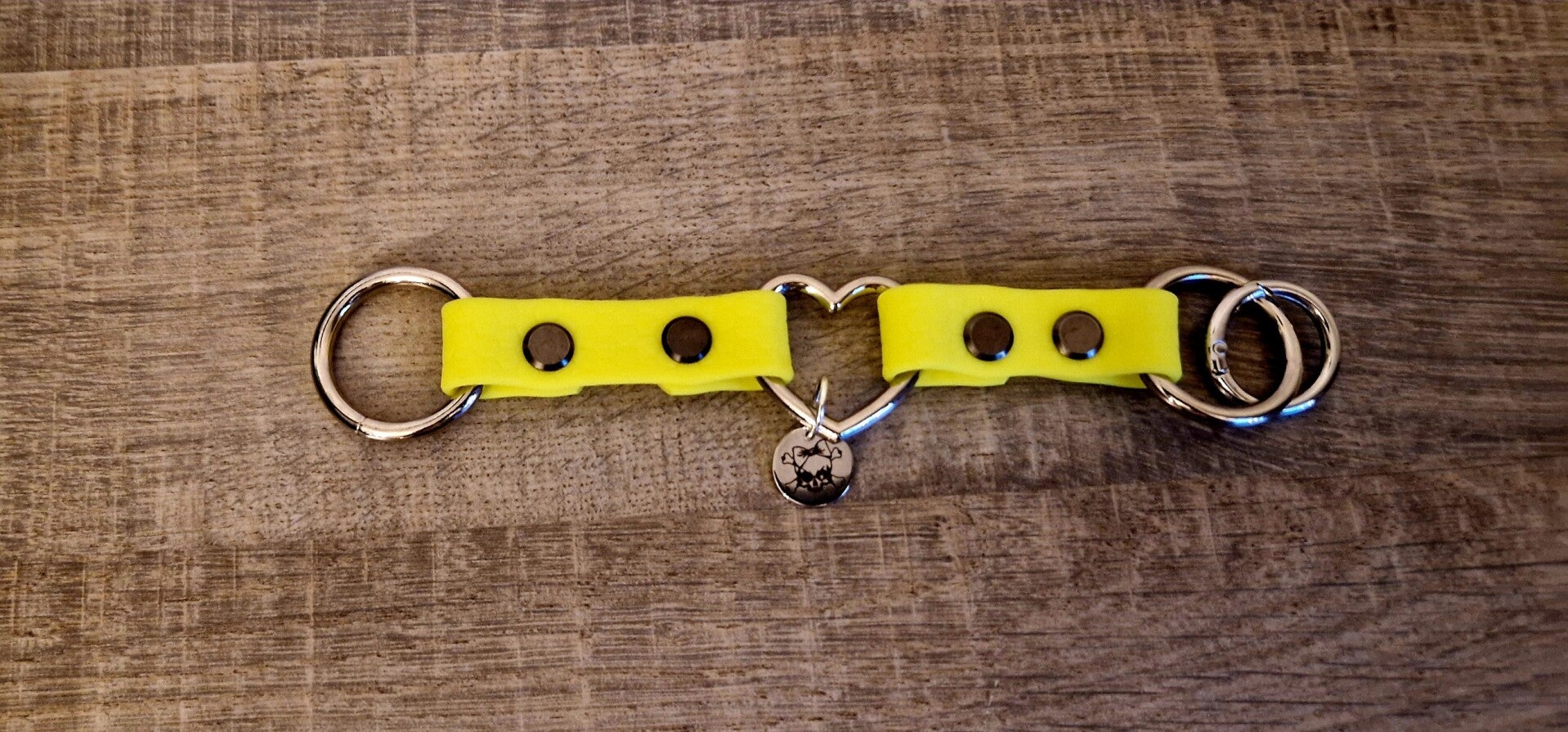 Deze speelse armband combineert neon geel met een subtiel hartvormig detail, waardoor het de perfecte mix is van stoer en verleidelijk. De zilverkleurige hardware en de kenmerkende ringen geven een edgy touch, terwijl het hartje in het midden de speelse kant benadrukt. Een opvallend accessoire voor iedereen die durft te stralen! π