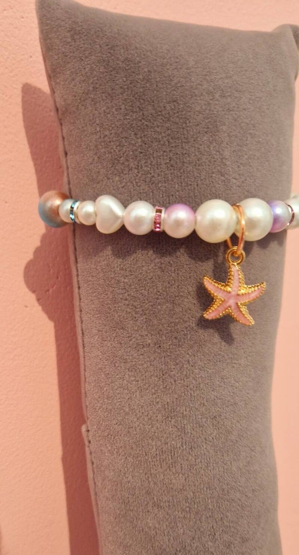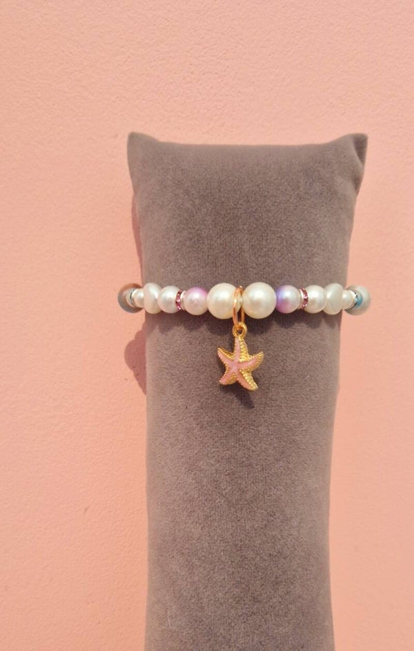 Een zomers juweeltje voor je pols πβ¨ Sea Whisper brengt parelachtige glans, pastel accenten en een schattige roze zeester-bedel samen in een speelse, luchtige armband. De hartvormige kraal en fonkelende tussenstukjes zorgen voor dat extra sparkle π