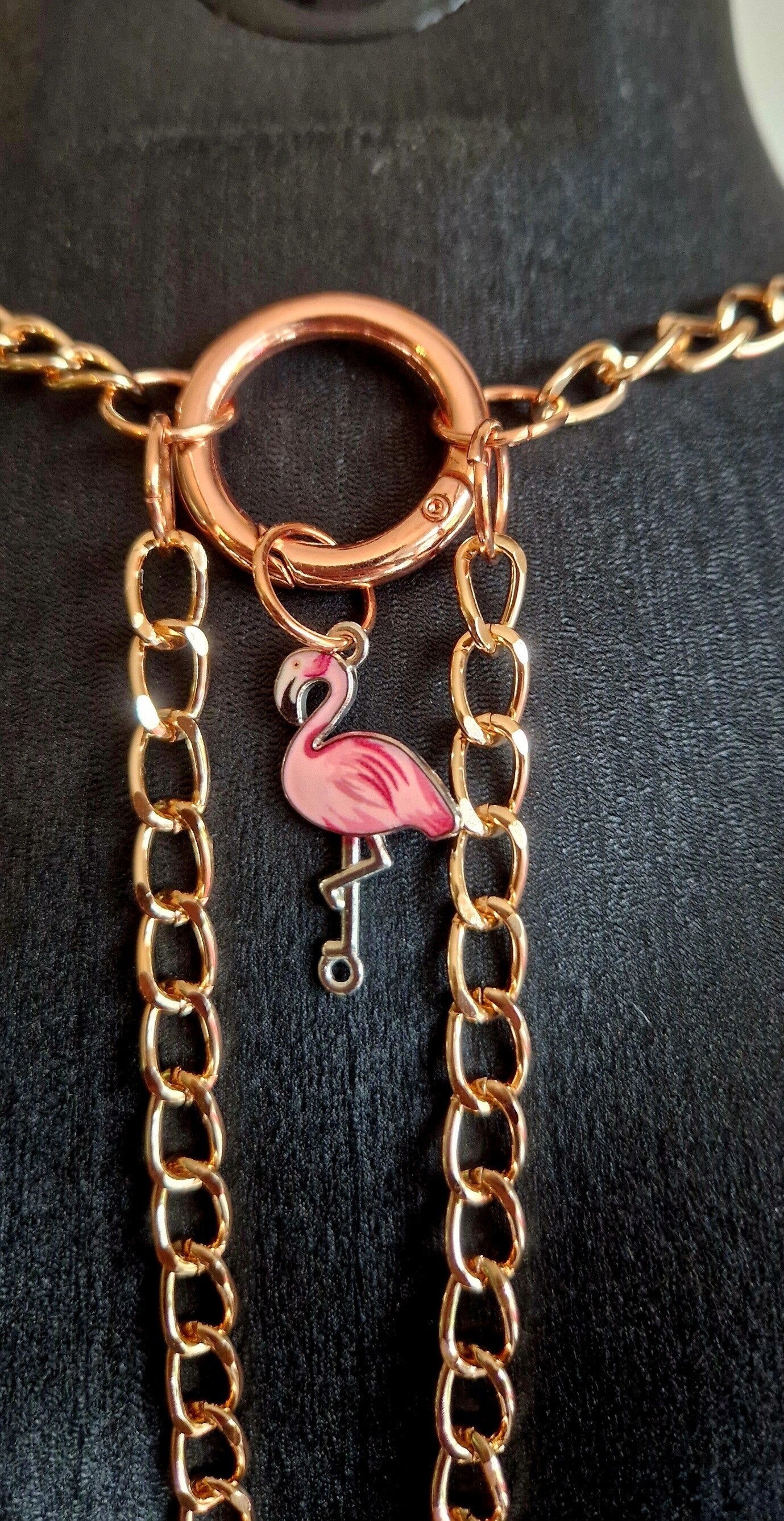 Tropical Flamingo 🦩 – Handgemaakte bodychain met roségoud en strass