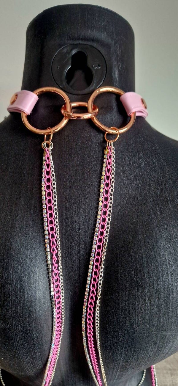 Ontdek het ultieme veelzijdige bodychain harnas: de Pink Fantasy 3-Way en White Sparkle 3-Way. Dit handgemaakte design combineert strass, elegante kettingen en vegan leather tot een uniek statement piece dat je op 3 manieren kan dragen.