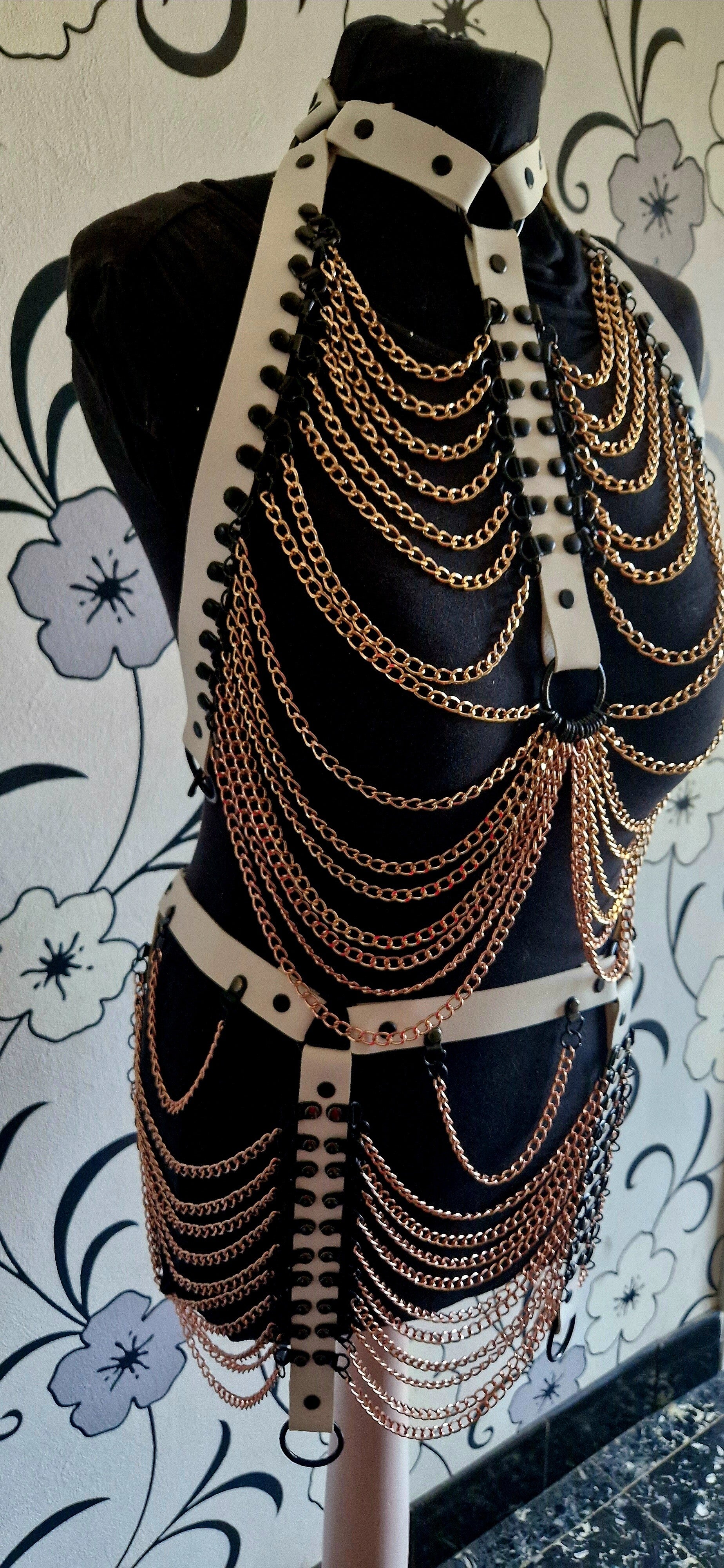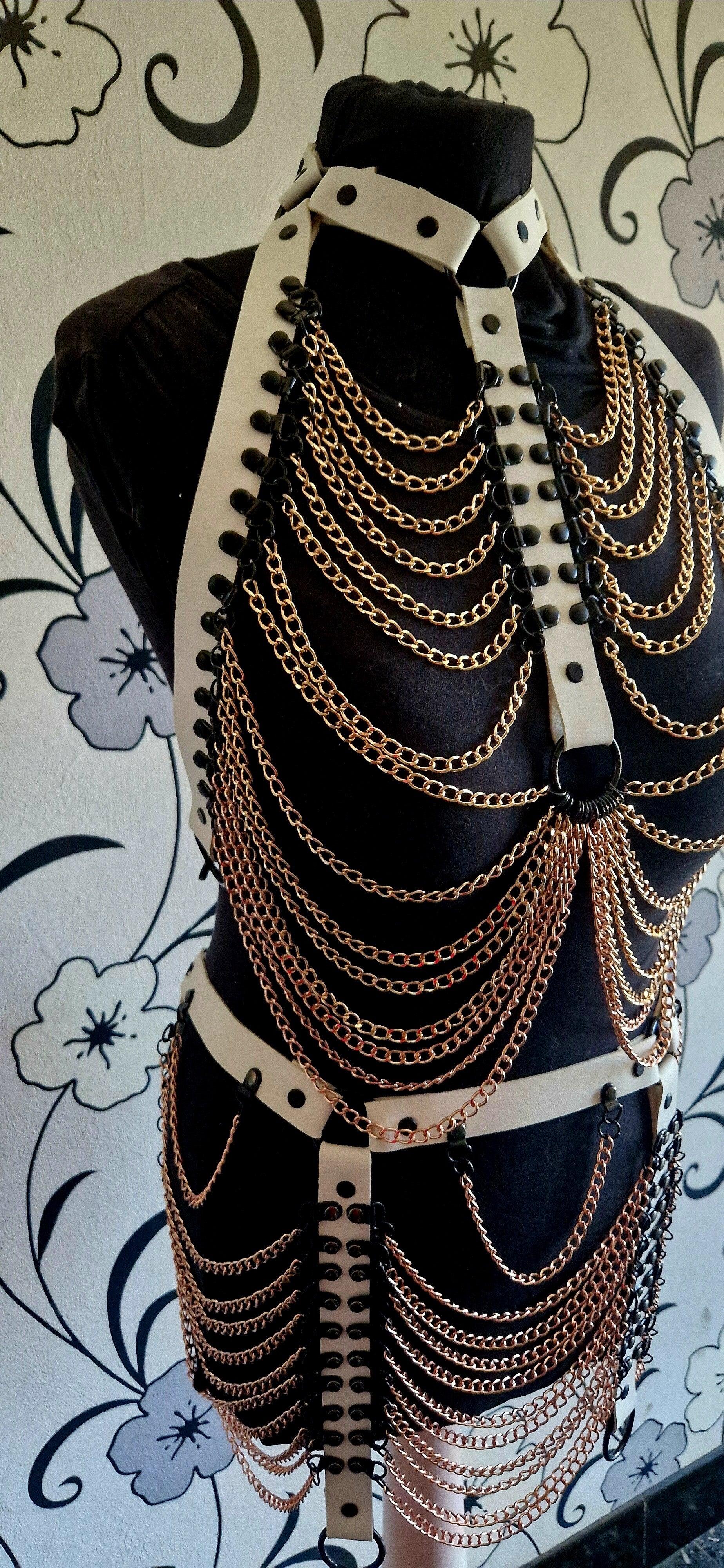 Elke beweging wordt gevolgd door een dans van kettingen, sierlijk draperend over je lichaam in een perfecte balans tussen structuur en speelsheid.