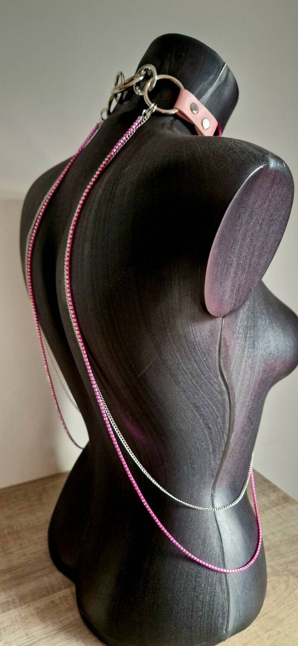 De combinatie van licht- en donkerroze kettingen, zilverkleurige schakels en roze strassdetails zorgt voor een onweerstaanbare, glinsterende look.