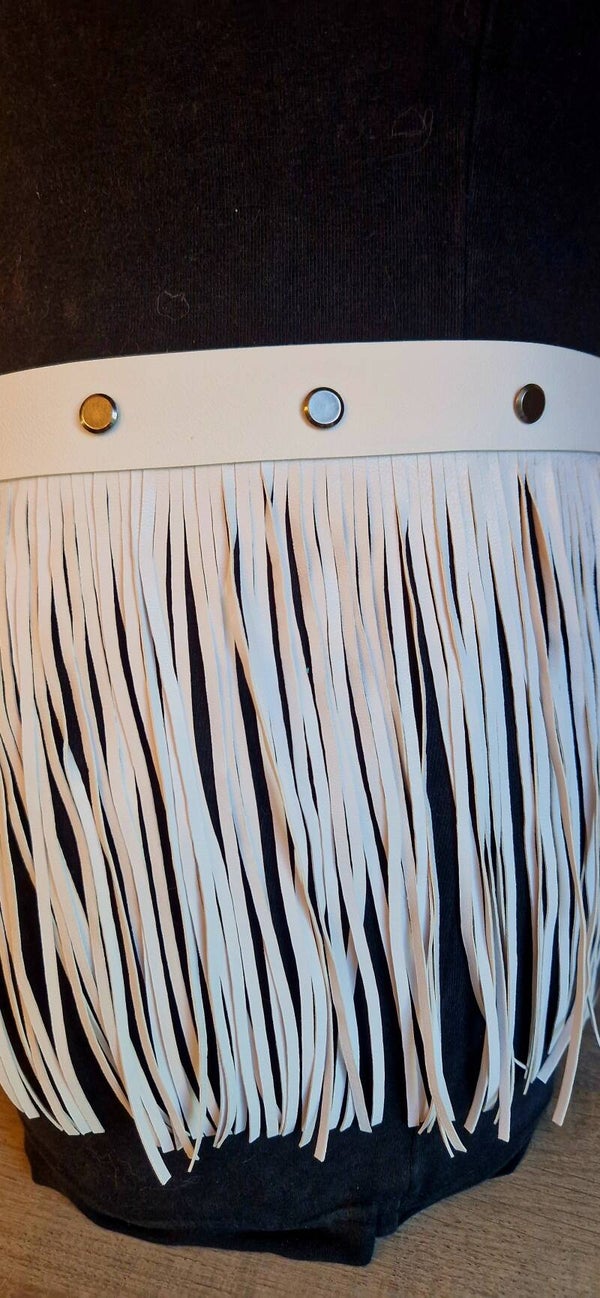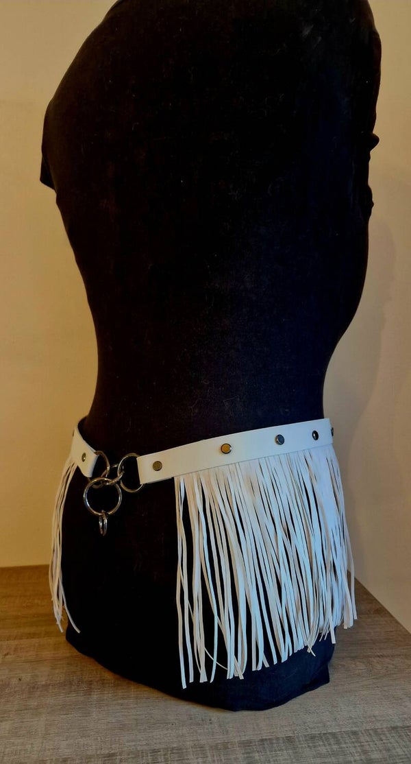 De Ivory Tease is een handgemaakte fringe rokriem in stevig wit leer π€ – ontworpen om te verleiden bij elke beweging. Lange franjes π dansen sensueel rond je heupen, terwijl de dubbele metalen O-ringen achteraan zorgen voor die subtiele kinky touch π.