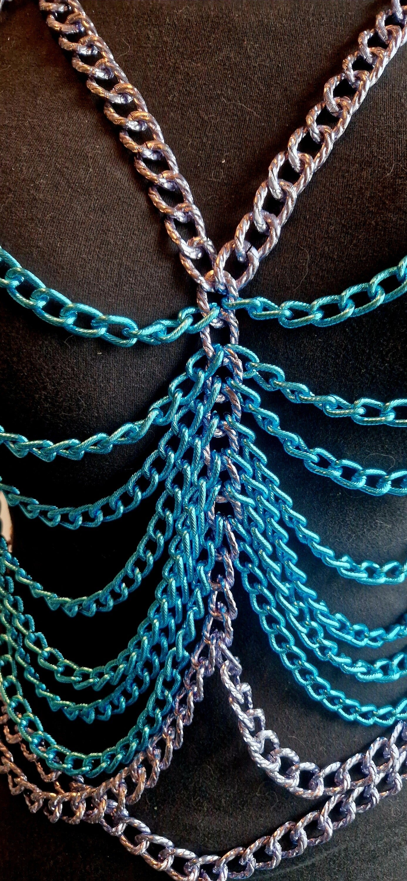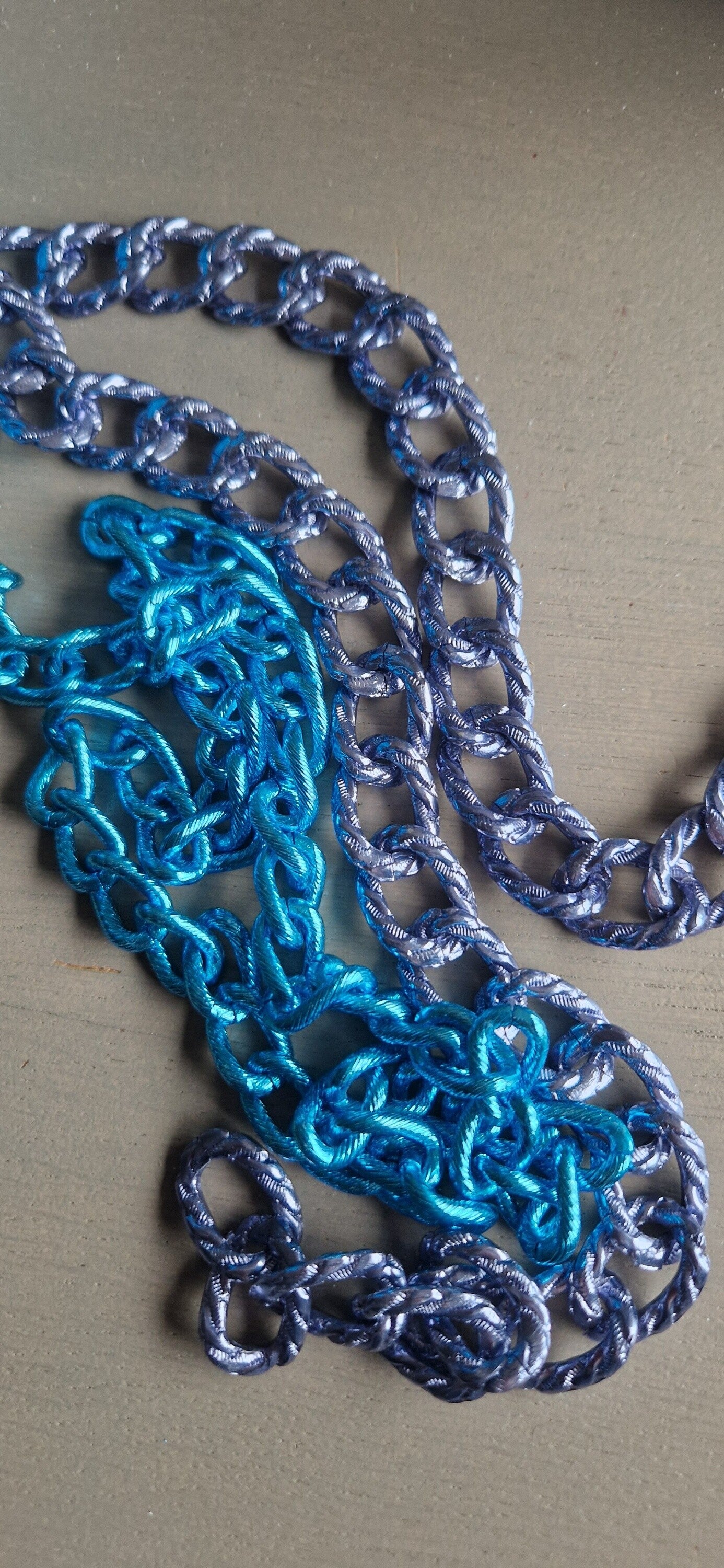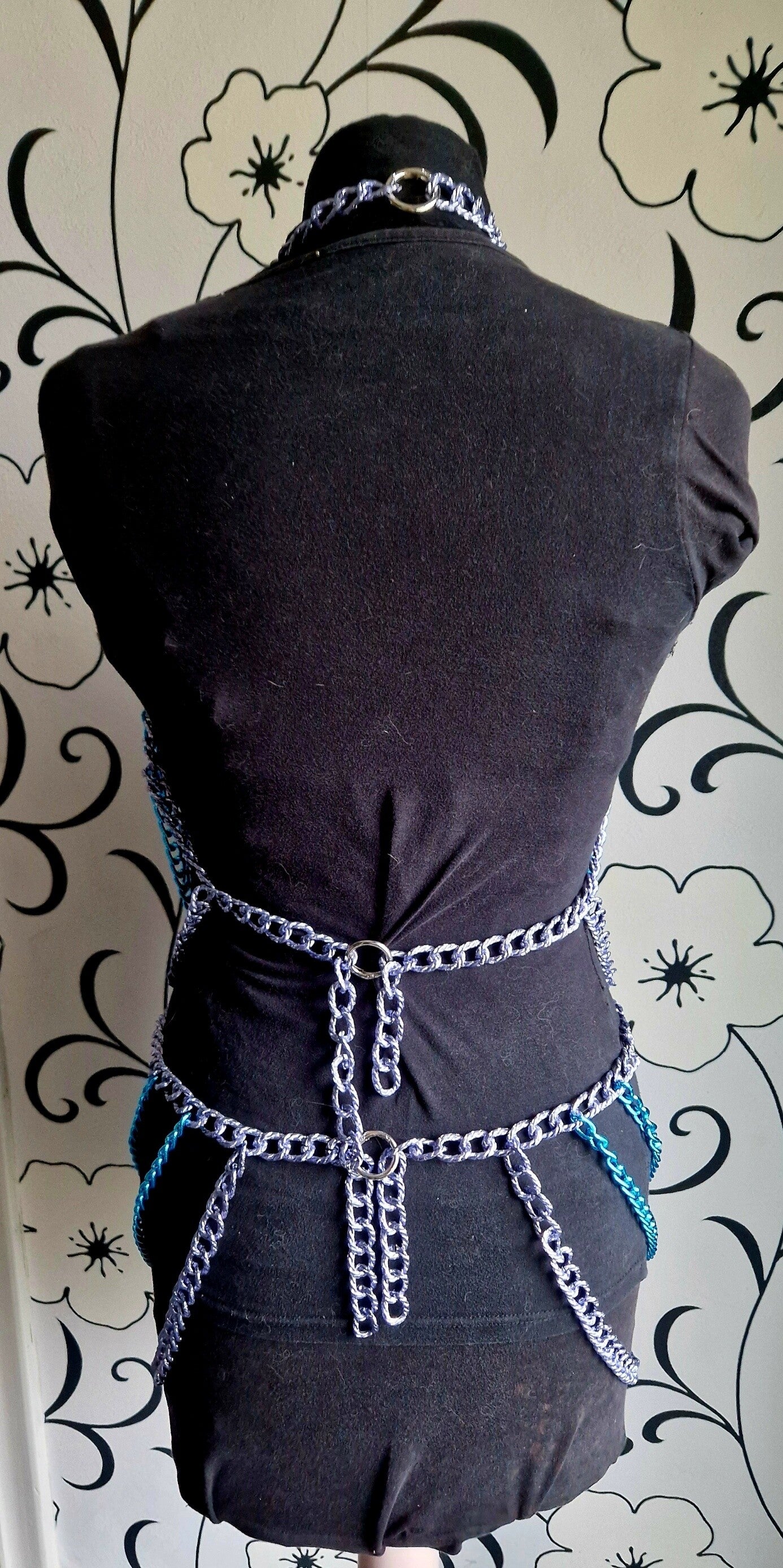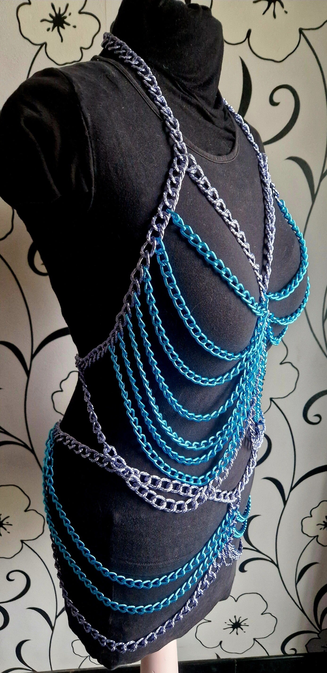 De Electric Kiss is een exclusieve 2-delige set bestaande uit een top en rok, volledig met de hand gemaakt uit duurzame, luxueuze Italiaanse kettingen. Het diepe jeansblauw vormt een krachtige basis, terwijl de felblauwe highlights zorgen voor een speels en hypnotiserend contrast.