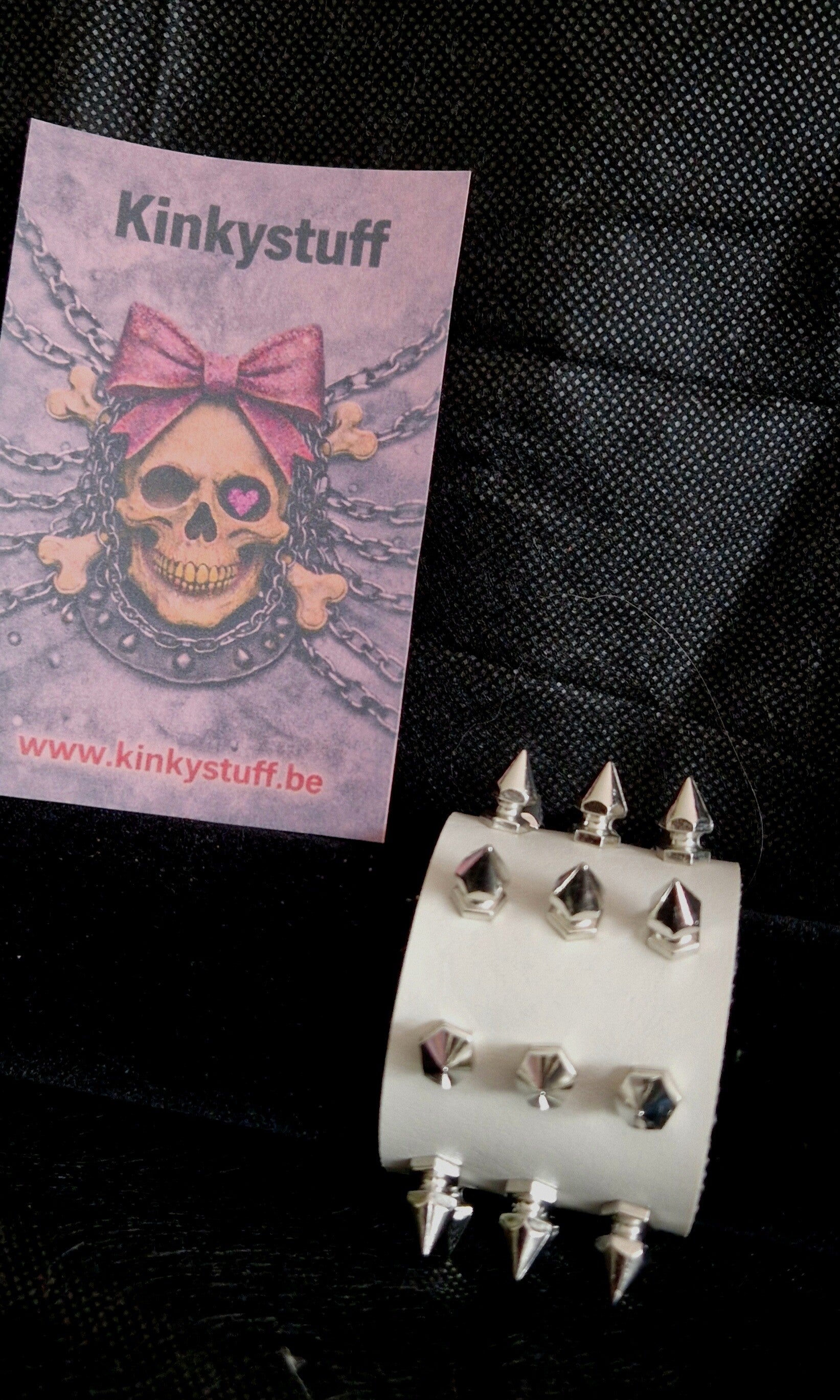 Een gedurfde mix van elegantie en attitude. De Crystal Edge Cuff combineert een strakke witte basis met glanzende metalen studs voor een look die tegelijk clean, krachtig en verleidelijk is.