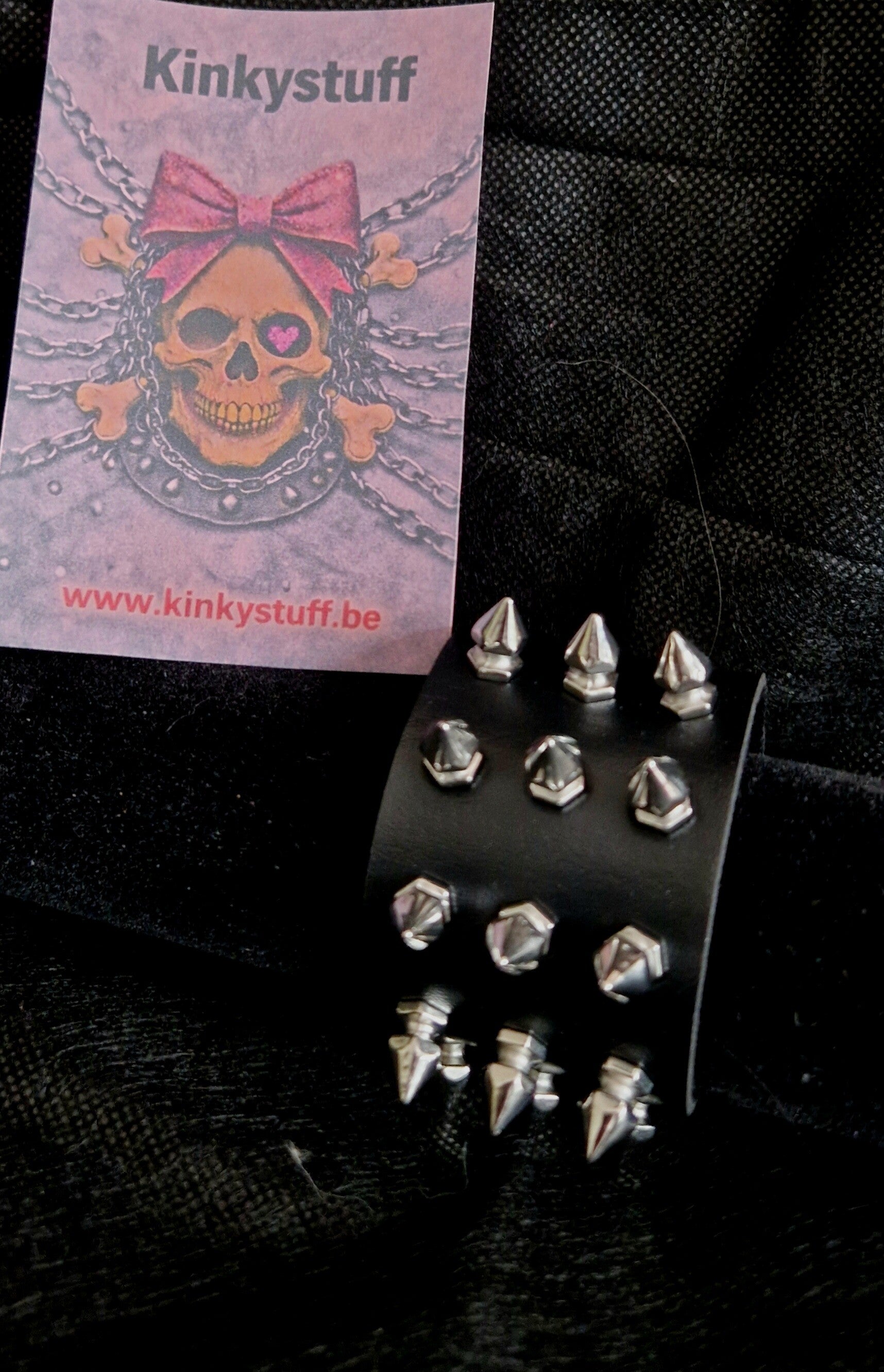 Voor wie durft op te vallen. De Iron Rebel Cuff combineert een stoere zwarte basis met glanzende metalen studs voor een krachtige, edgy uitstraling met een speelse twist.