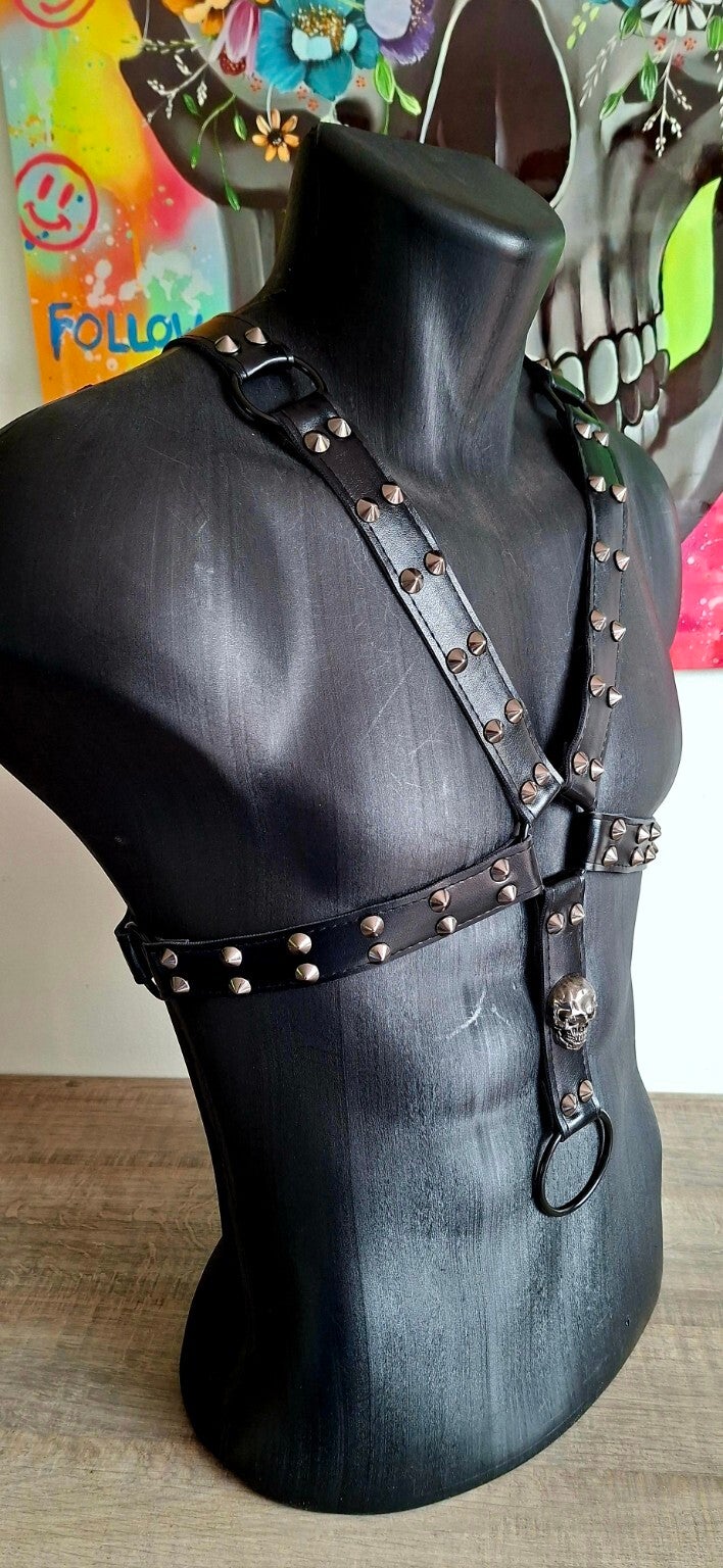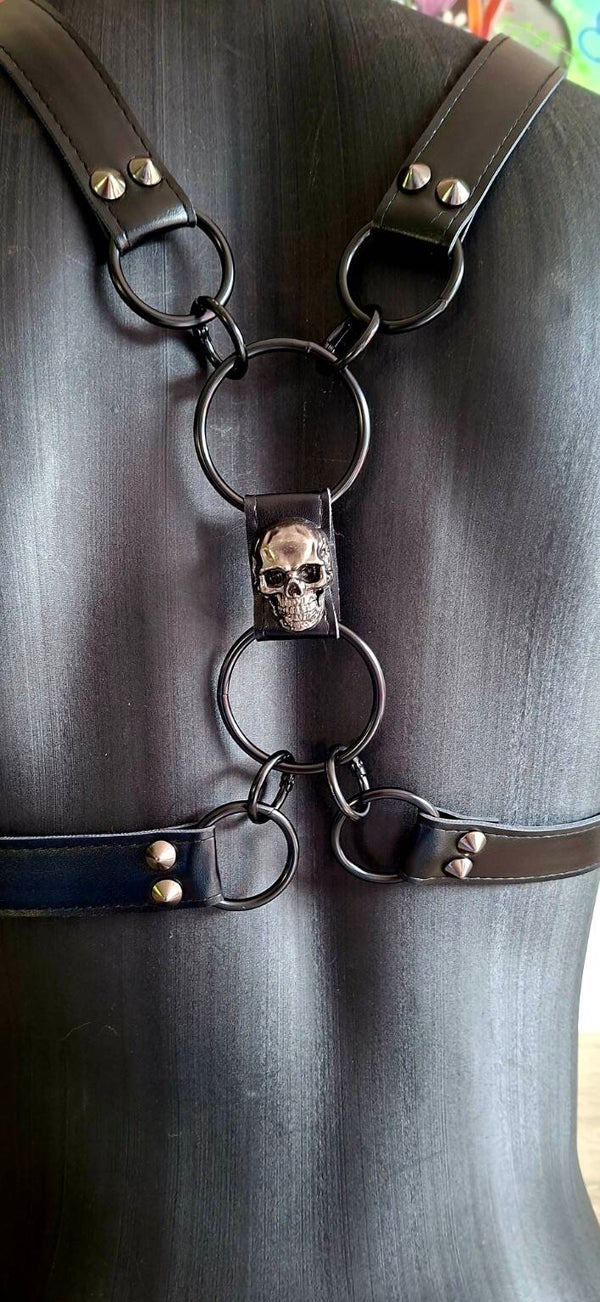 Met zwarte ringen, gun metal details en een stoere skull accent straalt dit ontwerp pure attitude uit. De combinatie van premium materialen en krachtige lijnen maakt dit harness perfect voor wie geen standaard look zoekt.